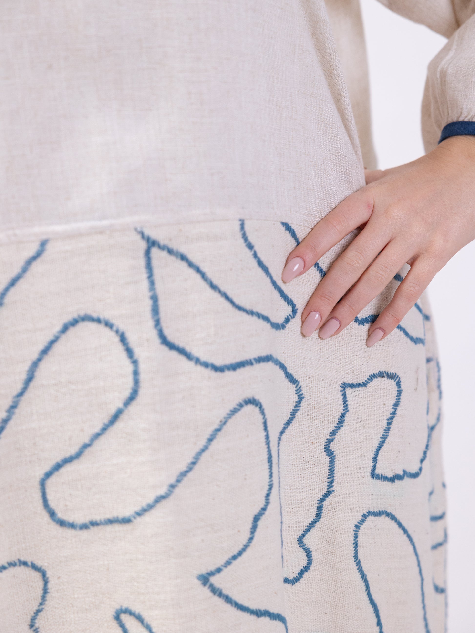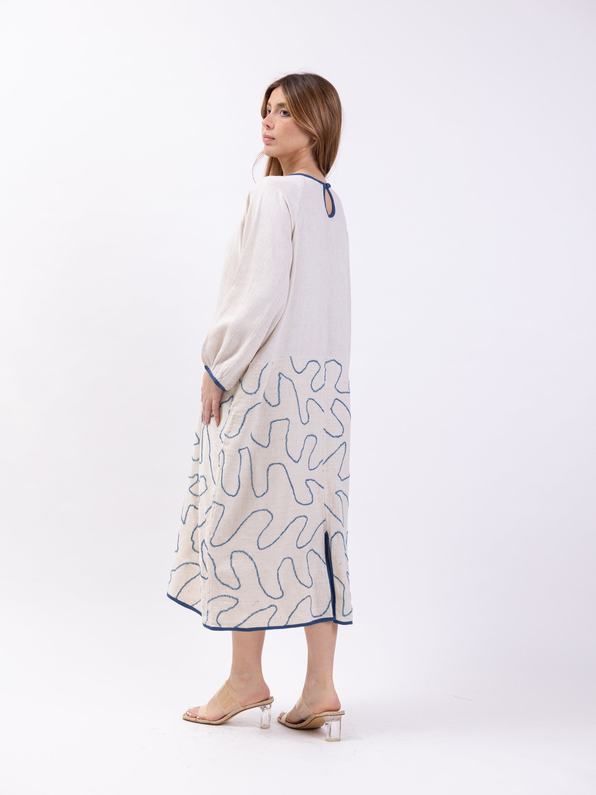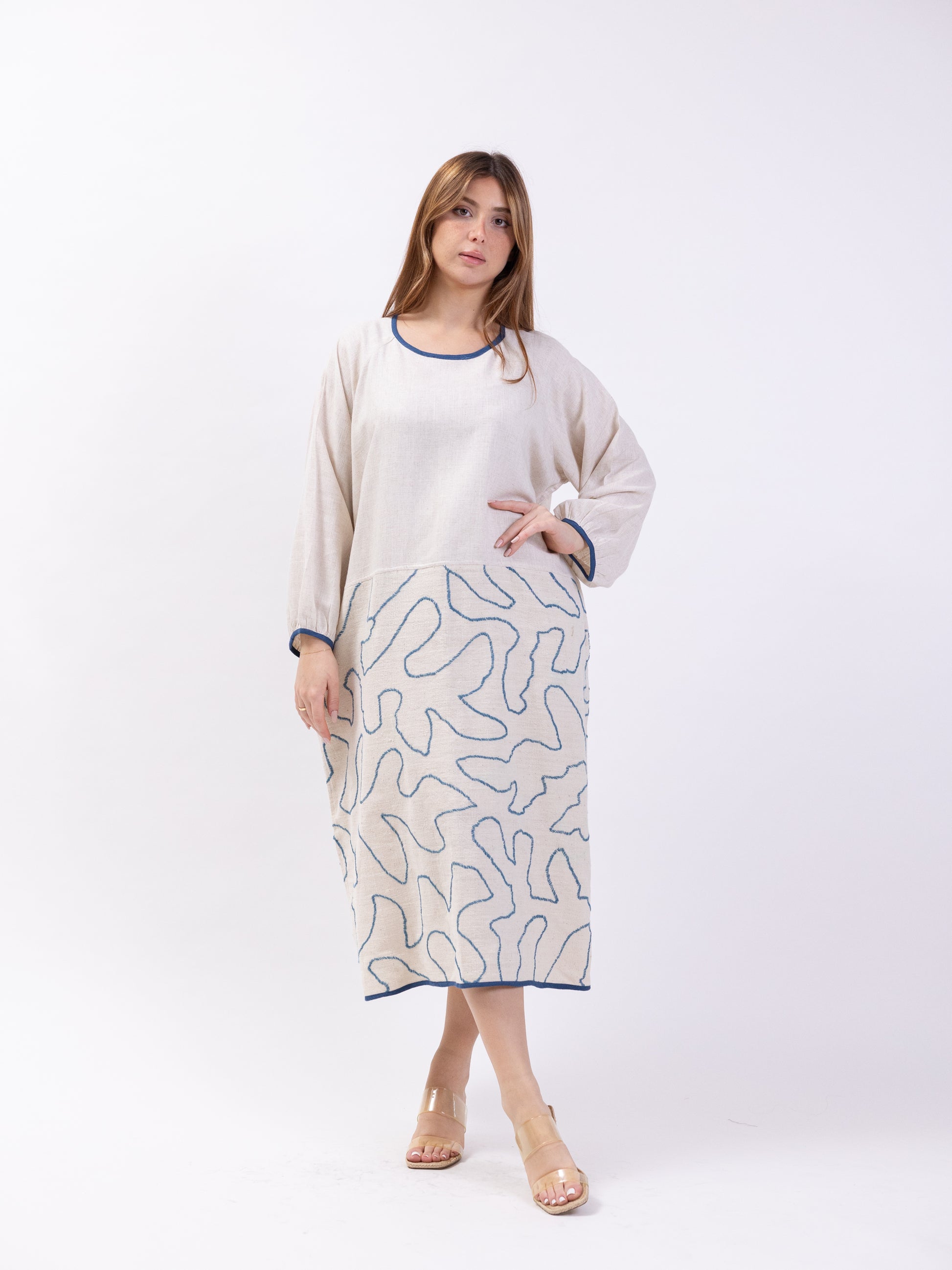 Free size long sleeve dress with blue print