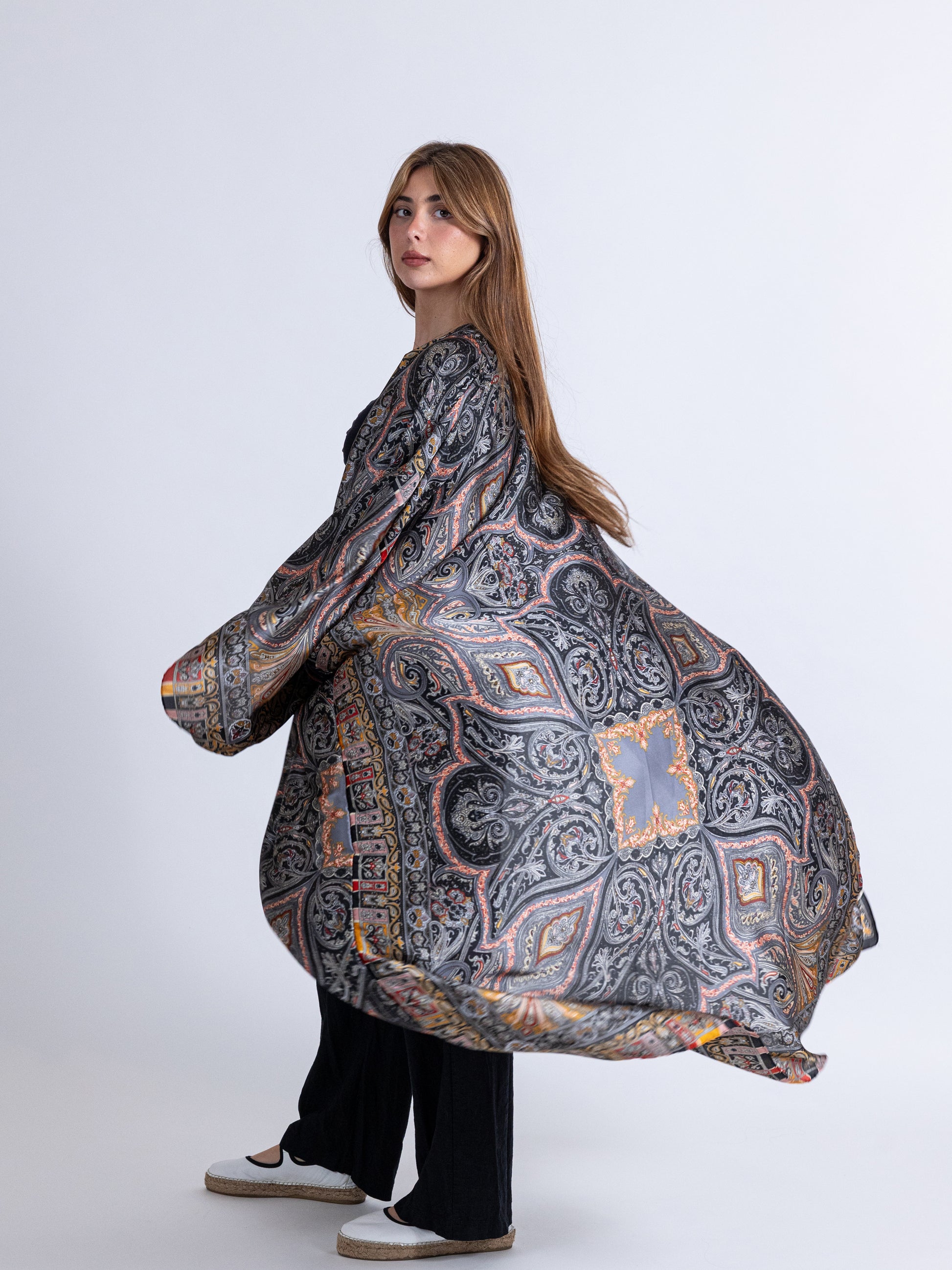 Long sleeve silk bishet with brown and black print - SOLD OUT