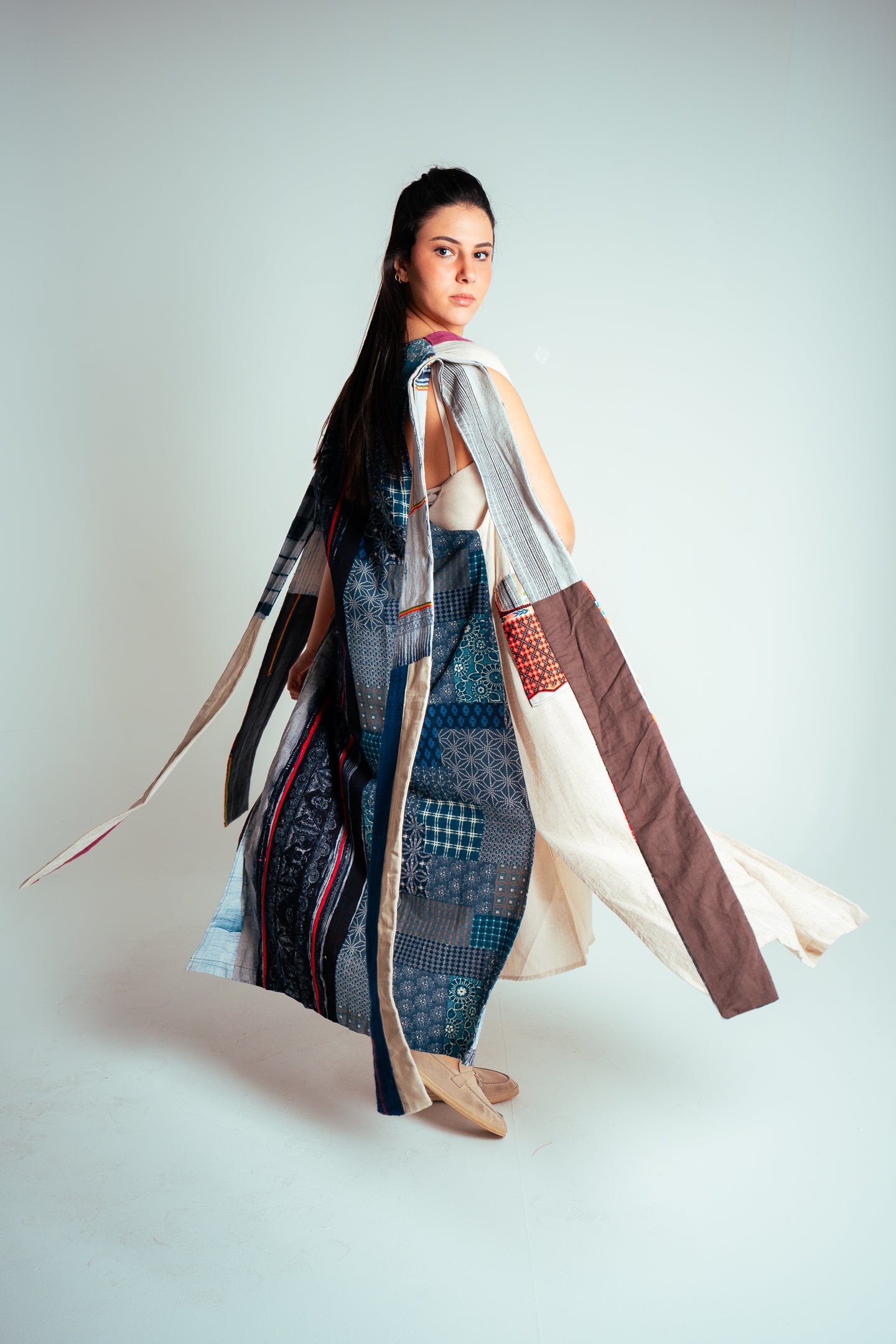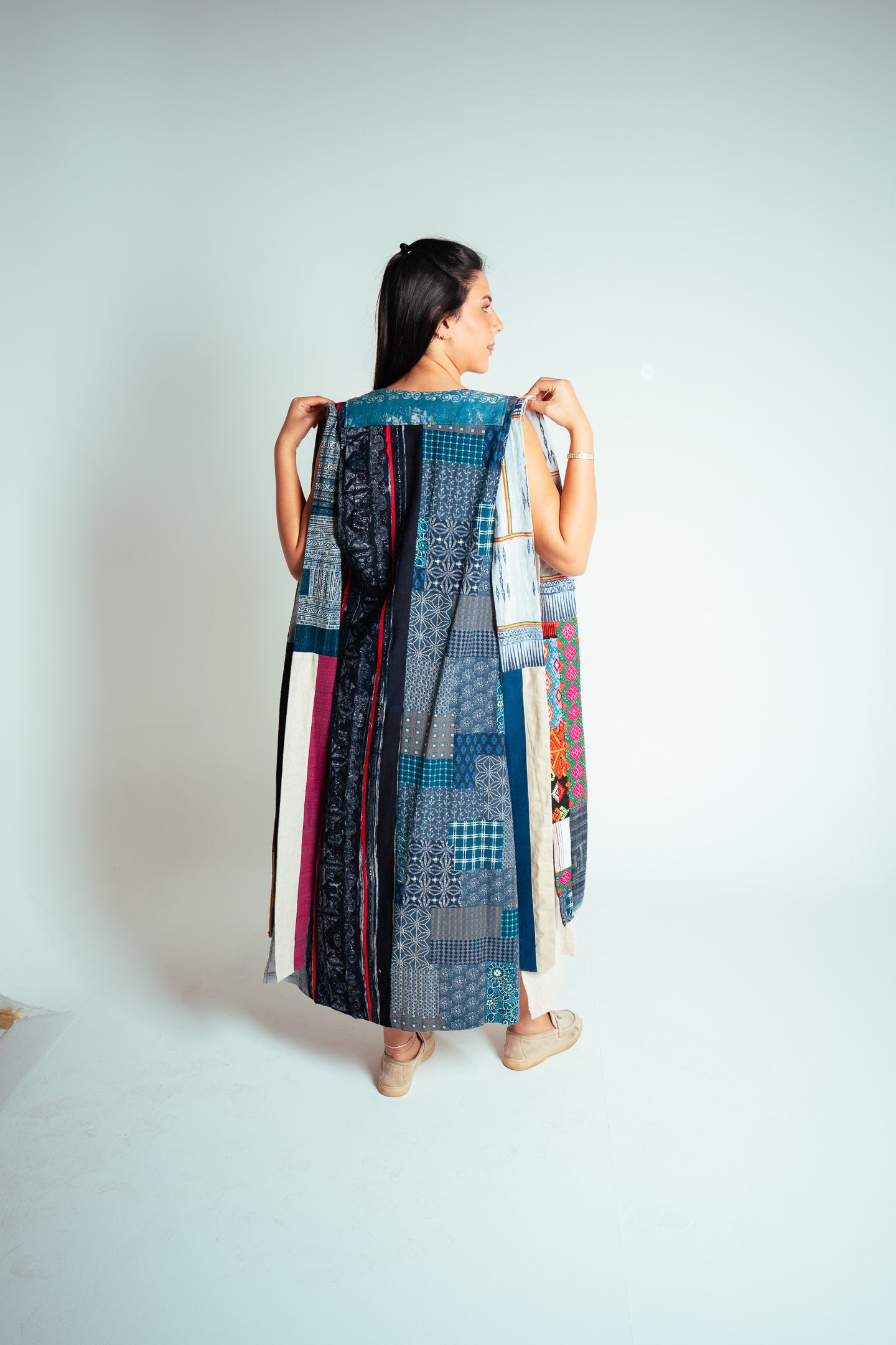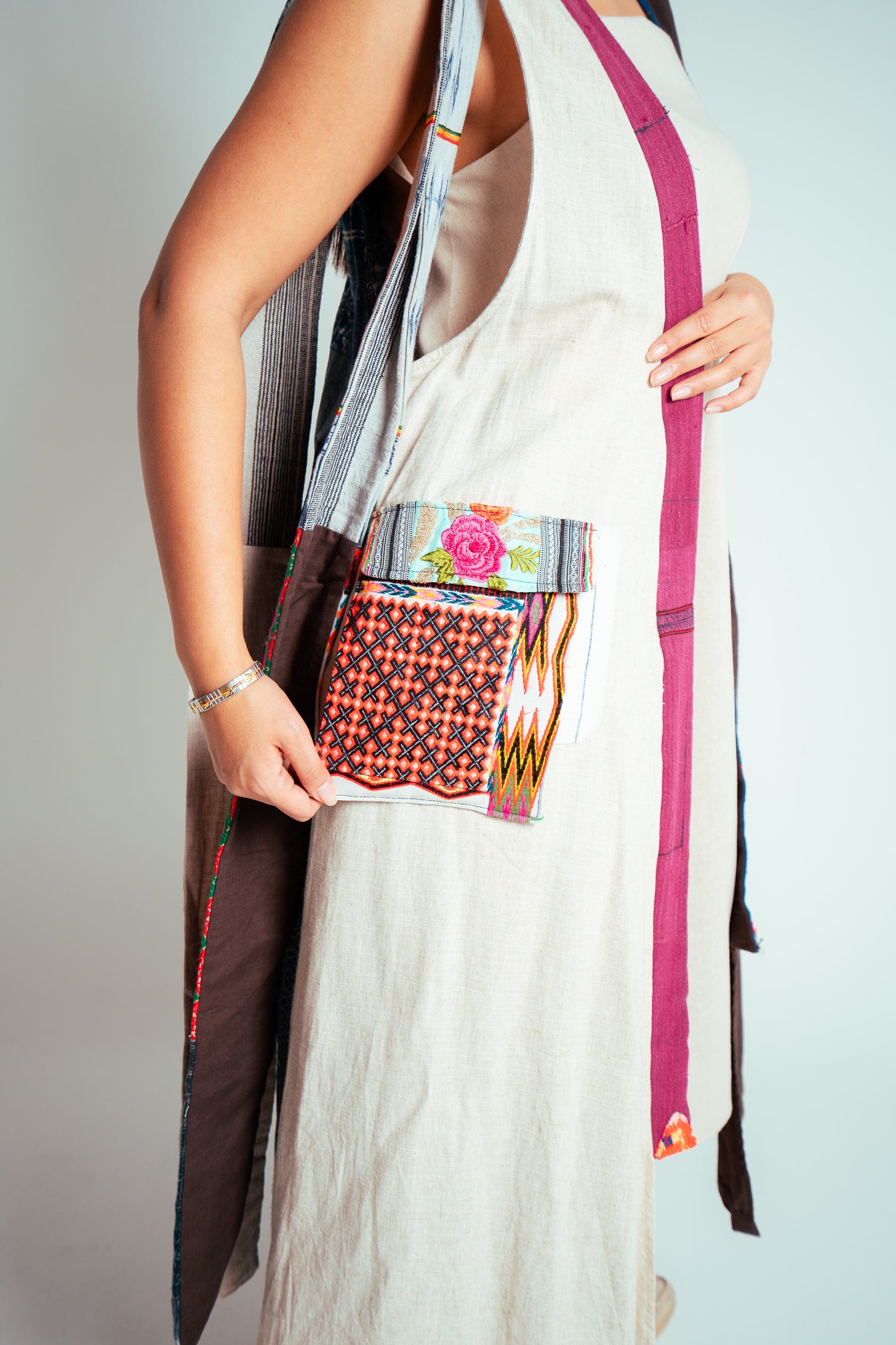 ليه طويل بوصلاة قماش مفتوحه وجيوب مطرزه مع فستان لنن ناعم .