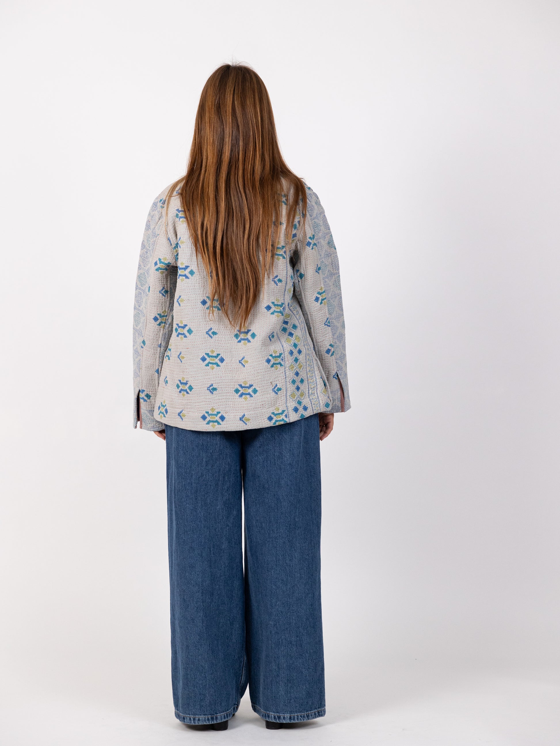 Handmade Grey Blazer with blue print