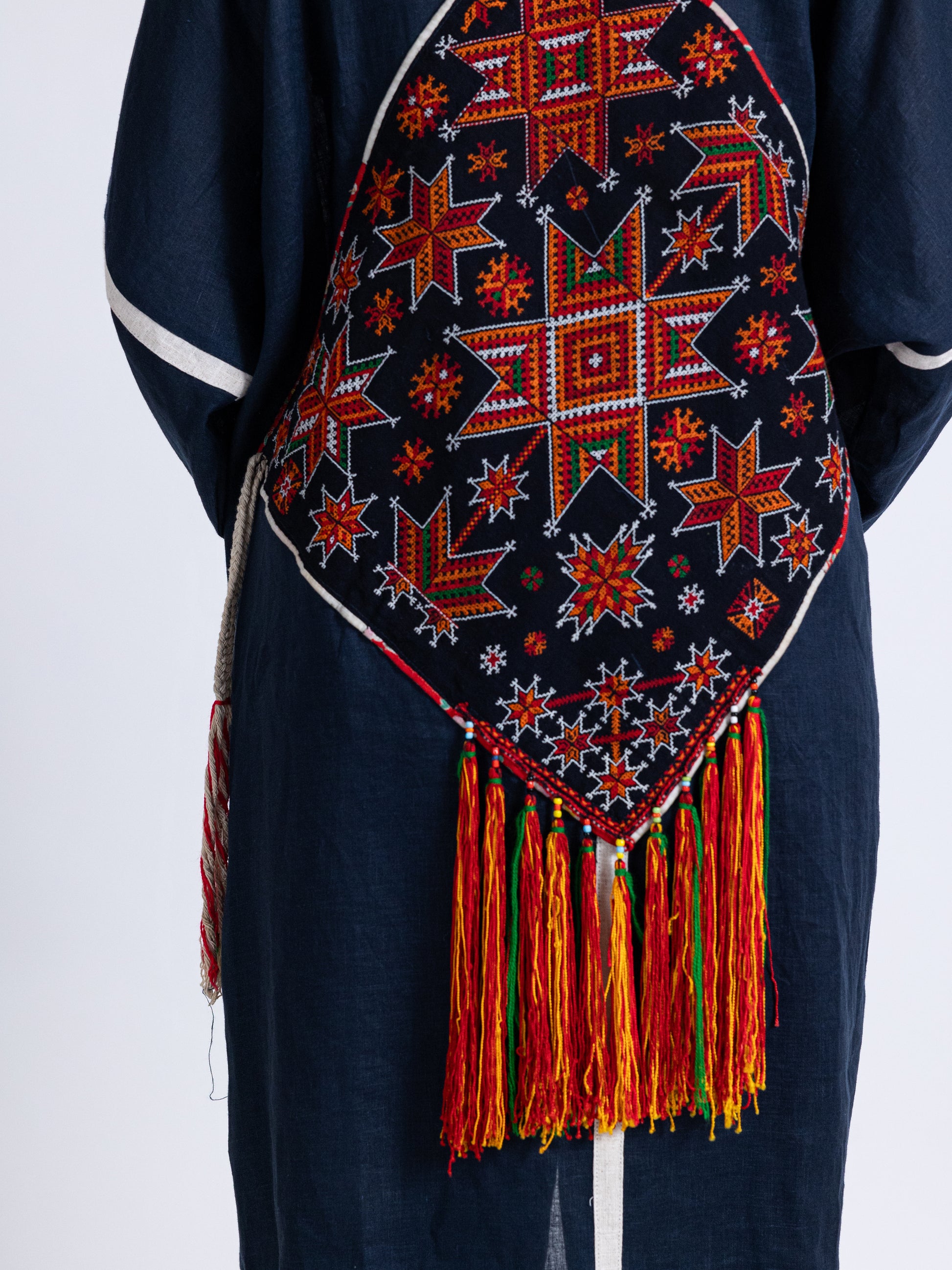 Blue midi long sleeve jacket with a big arabesque print on the back